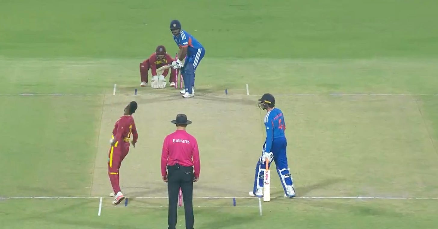 Samson was eventually dismissed to a slow full toss. And I think he was just as surprised to see that it was a slower ball, but ultimately there wasn’t much he could do about it: